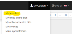 You can see an overview of all your favourite lots by clicking on ‘Mijn catalogus’ followed by ‘Mijn favorieten’.