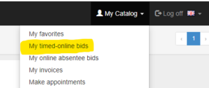 By clicking the button ‘Mijn timed-online biedingen’, you will find an overview of the lots you have bid on. This way you can easily keep an eye on the lots you are interested in.